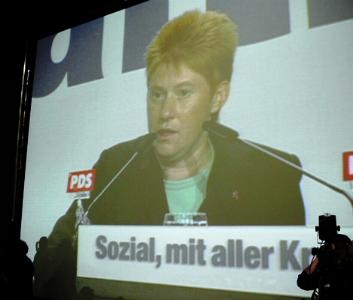 Gesine Lötzsch und Petra Pau bilanzierten zur Halbzeit der Legislatur ihre Arbeit als PDS im Bundestag. Zur Freude vieler Delegierter begann Petra mit den Worten: Fragt die Randfichten, wie es der PDS im Bundestag geht, und ihr werdet hören: Ja - sie lebt noch! - Und sie stirbt nicht! Erstmals kürte ein PDS-Parteitag seine Gremien über ein drahtloses TED-System. Das verkürzte die Wahlgänge erheblich, nicht aber den Parteitag, denn die PDS liebt Geschäfts-Ordnungs-Anträge und die kosten Zeit. Demokratie hat ihren Preis. |